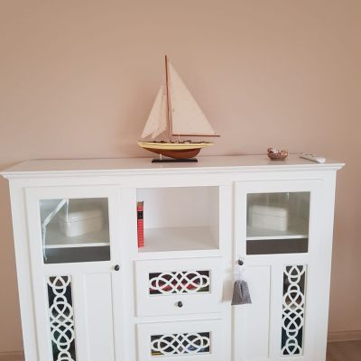 Das Obergeschoss ist außerdem mit einer gemütlichen Sitzgelegenheit sowie einem gut gefüllten Bücherschrank ausgestattet. Dieser Bereich des Hauses lädt zudem zu einem genussvollen Musikhören ein.